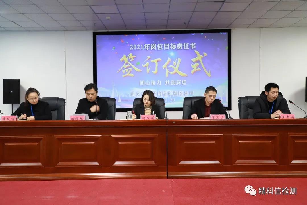 2月20日,新年伊始,萬象更新。精科信檢測(cè)舉行“2021年崗位目標(biāo)責(zé)任書簽訂儀式”。董事長(zhǎng)、總經(jīng)理田旭芳與管理干部簽訂崗位目標(biāo)責(zé)任書并講話。
